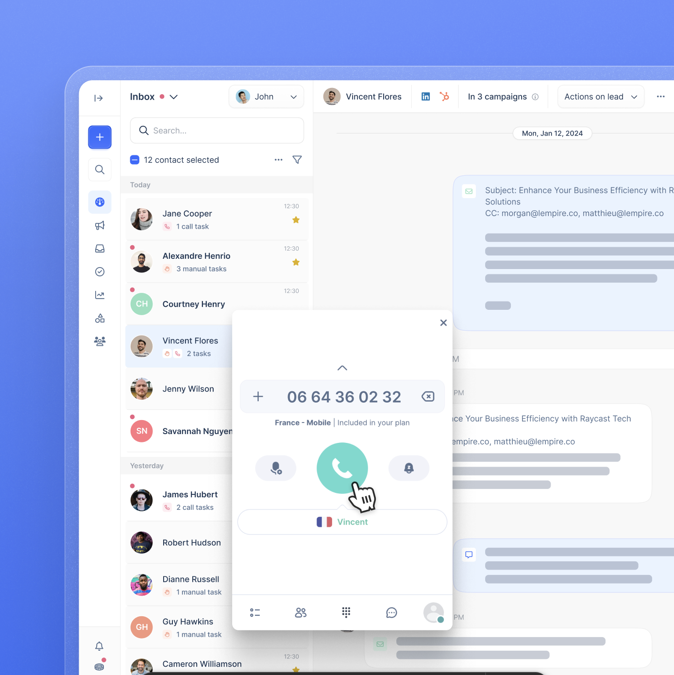 - Pause campaigns, create tasks, add notes, or mark leads as interested/not interested (individually or in bulk).